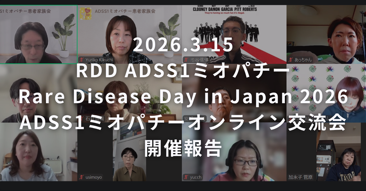RDD ADSS1ミオパチー Rare Disease Day in Japan 2026『ADSS1ミオパチーオンライン交流会』を開催しました。詳しくは コチラ から。