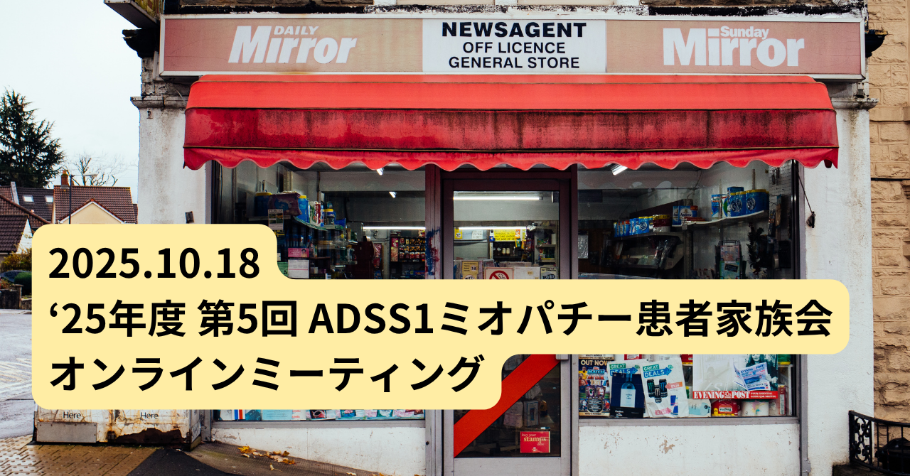 '25年度 第1回 ADSS1ミオパチー患者家族会 オンラインミーティングを開催しました。詳しくは コチラ から。